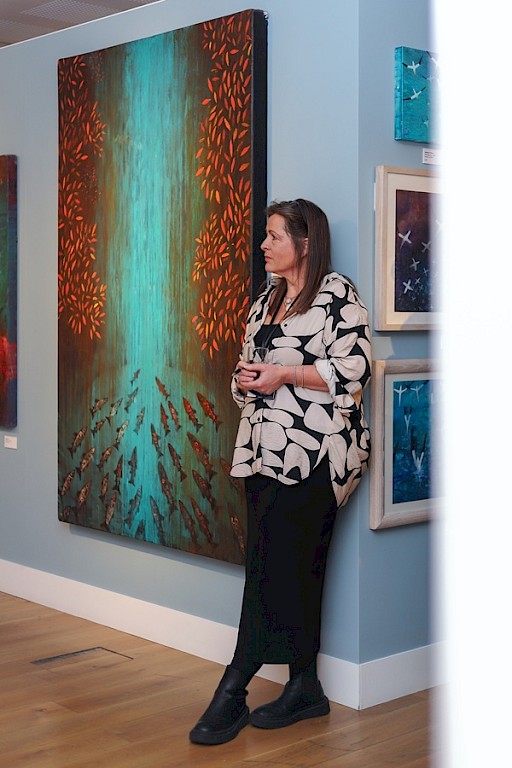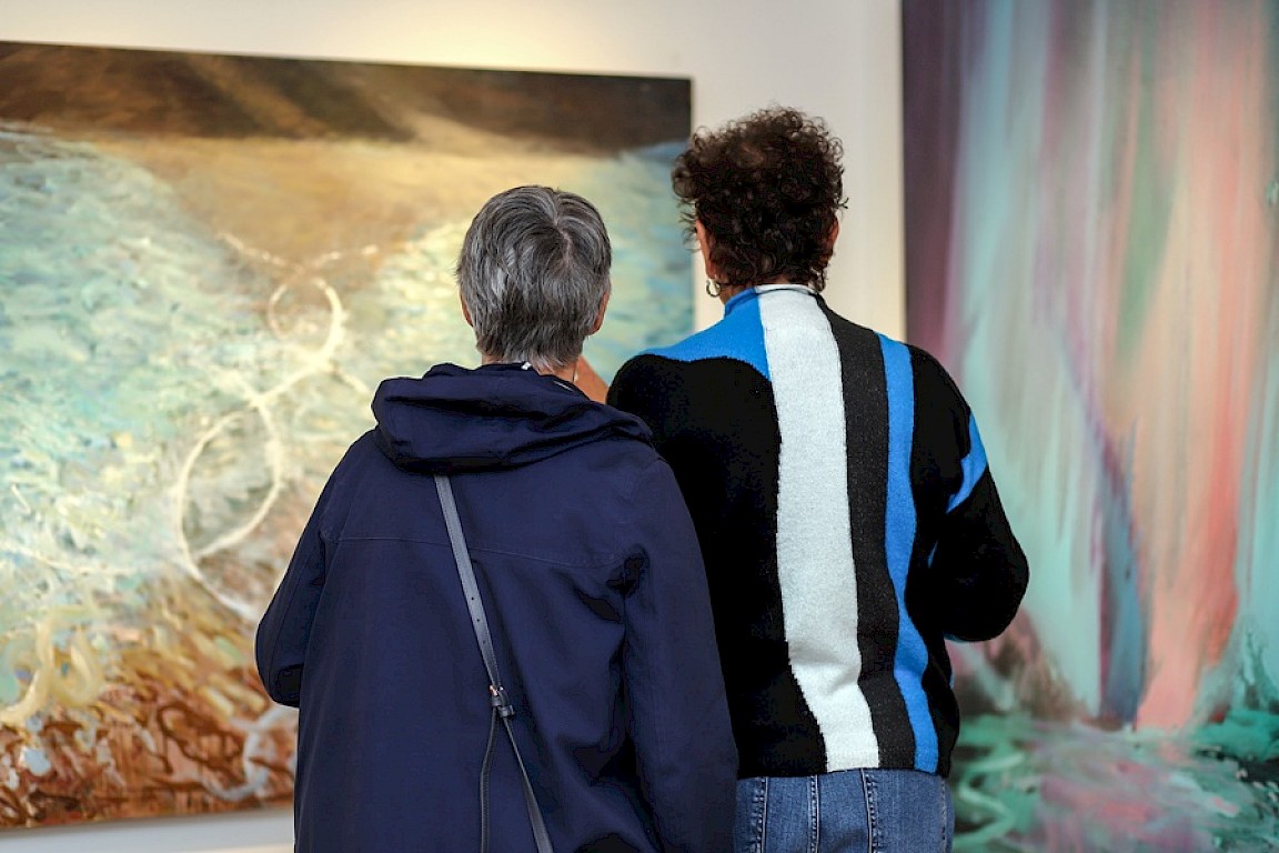 The artwork is displayed throughout Da Gadderie, the Briggistanes and the Boat Hall, offering a rare chance to experience the full breadth of Bloomer’s work — from intimate black and white etchings to vast, vividly coloured canvases alive with energy.