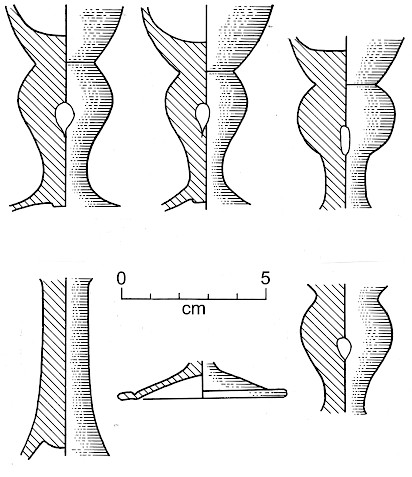 Pieces of wine-glass stems, possibly used on board, possibly carried as cargo. Archaeologists can get much information from broken pieces such as this.