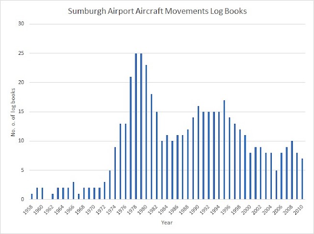 Archives assistant, Angus Johnson, has been working with our collection of Sumburgh airport movement logs (D1/236, 1958-2010). They cover many a change in technology, and in the Shetland economy.