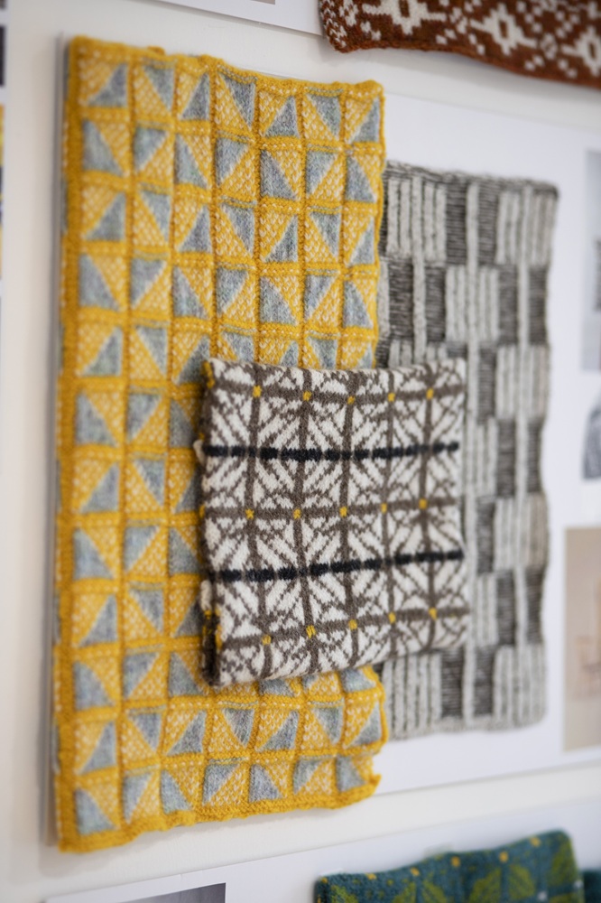 Main themes focus on translation of place, design for wellbeing, textile heritage, provenance and ancestry, in the promotion and use of wool through knitting, weaving, printing & embellishment.